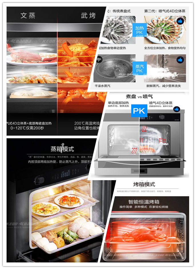 下方搭載的蒸烤消功能,一鍵輕松搞定,通過“薩萊米”陶瓷加熱盤產(chǎn)生蒸汽,并滲入食物中來使食物熟透,底部有一個(gè)光滑平整的加熱盤,隱形導(dǎo)流管將外置水箱中的水引流至加熱盤內(nèi),加熱盤不斷升溫,到一定溫度時(shí),盤內(nèi)的水即會(huì)蒸發(fā)成水蒸汽,蒸汽在箱內(nèi)彌漫,滲入食物中,使美食做到外酥里嫩,營(yíng)養(yǎng)不流失。多種蒸烤模式選擇能同時(shí)滿足用戶多樣化的烹飪需求,除此之外還有高溫消毒模式,為廣大用戶飲食健康提供有力保障!
