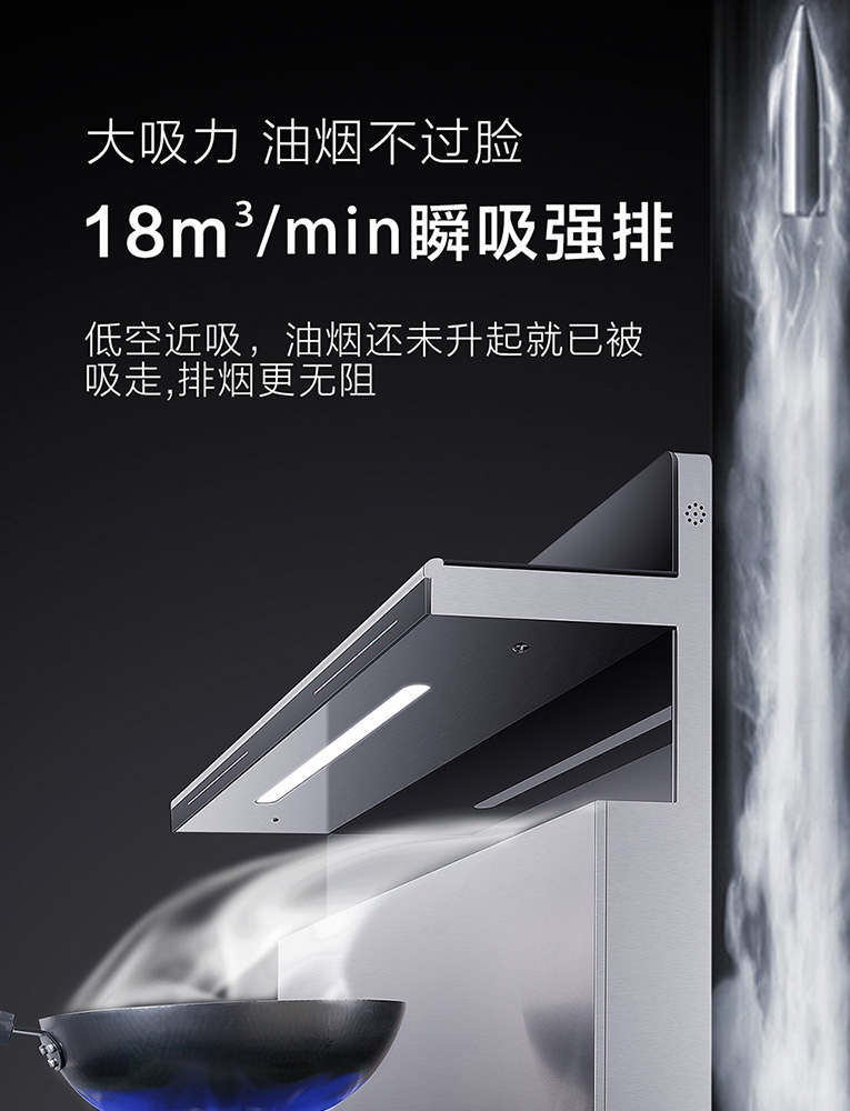市面上的集成灶一般都不考慮公共煙道造成的排煙阻力,而科恩E系列智能語音集成灶另辟蹊徑,大吸力低空近吸、大風壓瞬吸強排,不管公共煙道有多擁堵,都能讓油煙順著煙道順暢排出!