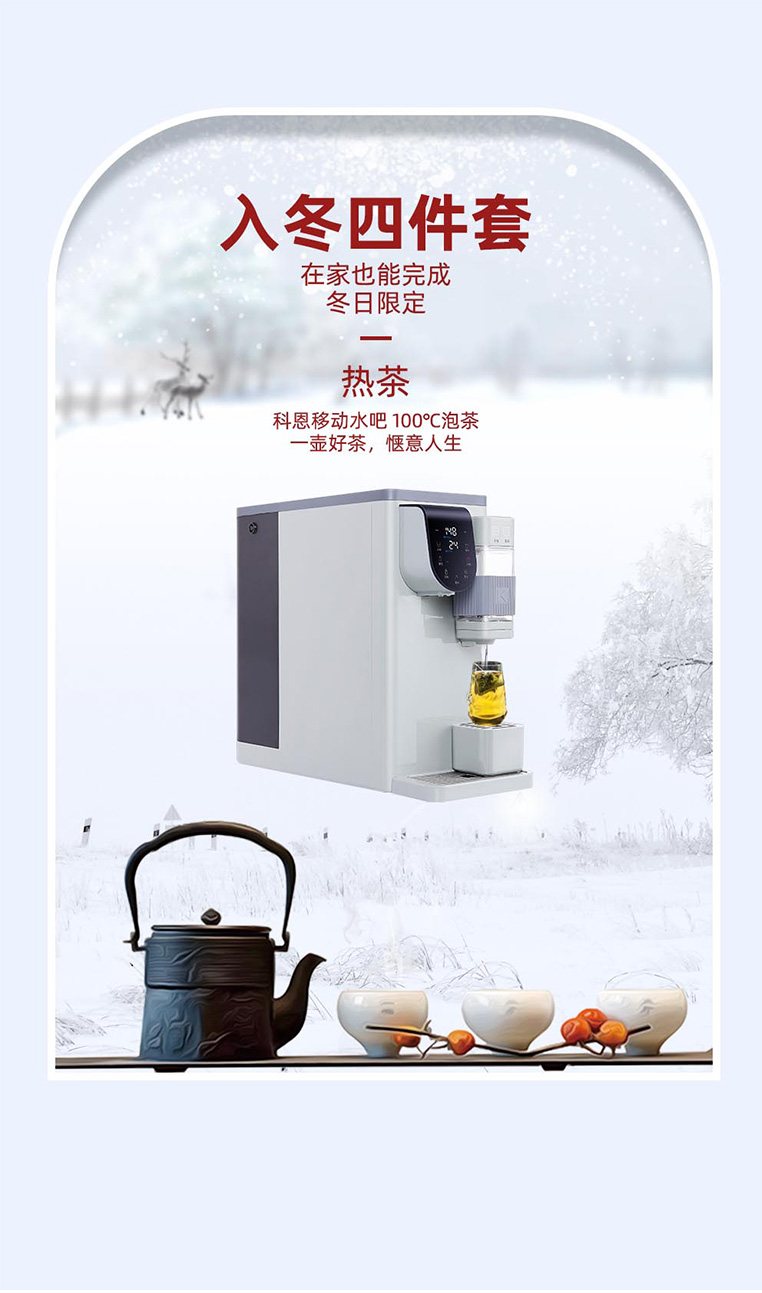 集成灶十大品牌、廚電行業(yè)十大品牌科恩R6068多功能移動凈水器全新上市,深度精濾,滴滴純鮮~1秒速熱不等待,輕松沖泡100℃好茶,根據(jù)個人口味加入牛奶,一杯暖到心里的奶茶輕松在家完成~