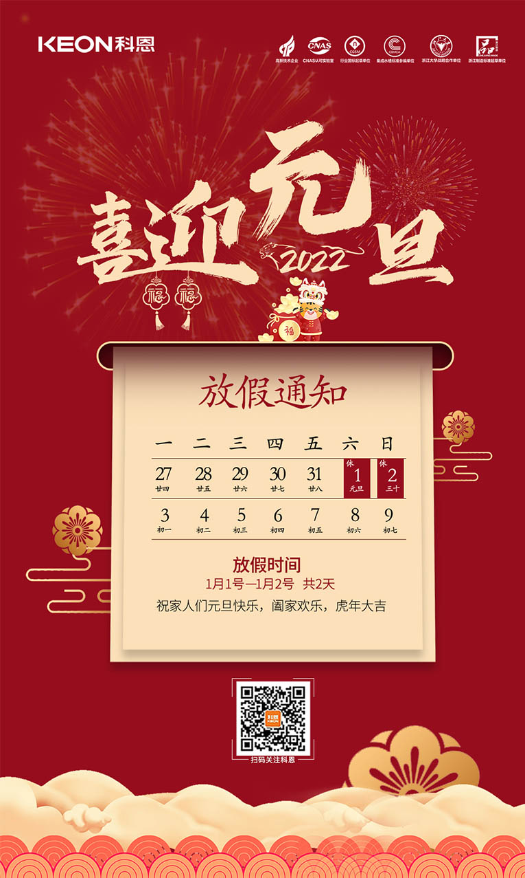 尊敬的全國科恩家人們:元旦將至,根據(jù)《國務院辦公廳公布2022年放假安排》,結合公司實際生產情況,科恩總部元旦放假安排通知如下: