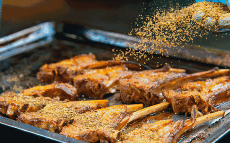 羊排洗凈放入鍋,放入桂皮、花椒、八角、鹽、姜、水,水沒過羊排,大火燒開,轉中小火煮30分鐘,將羊肉撈出瀝干,晾涼。將鹽均勻地摸遍羊排,再抹孜然粉、辣椒粉、油,用量根據個人口味,抹好放置半小時。再放到預熱至200℃的科恩S400集成灶中,烤制30分鐘。(食材大小不一時間可自行控制)。