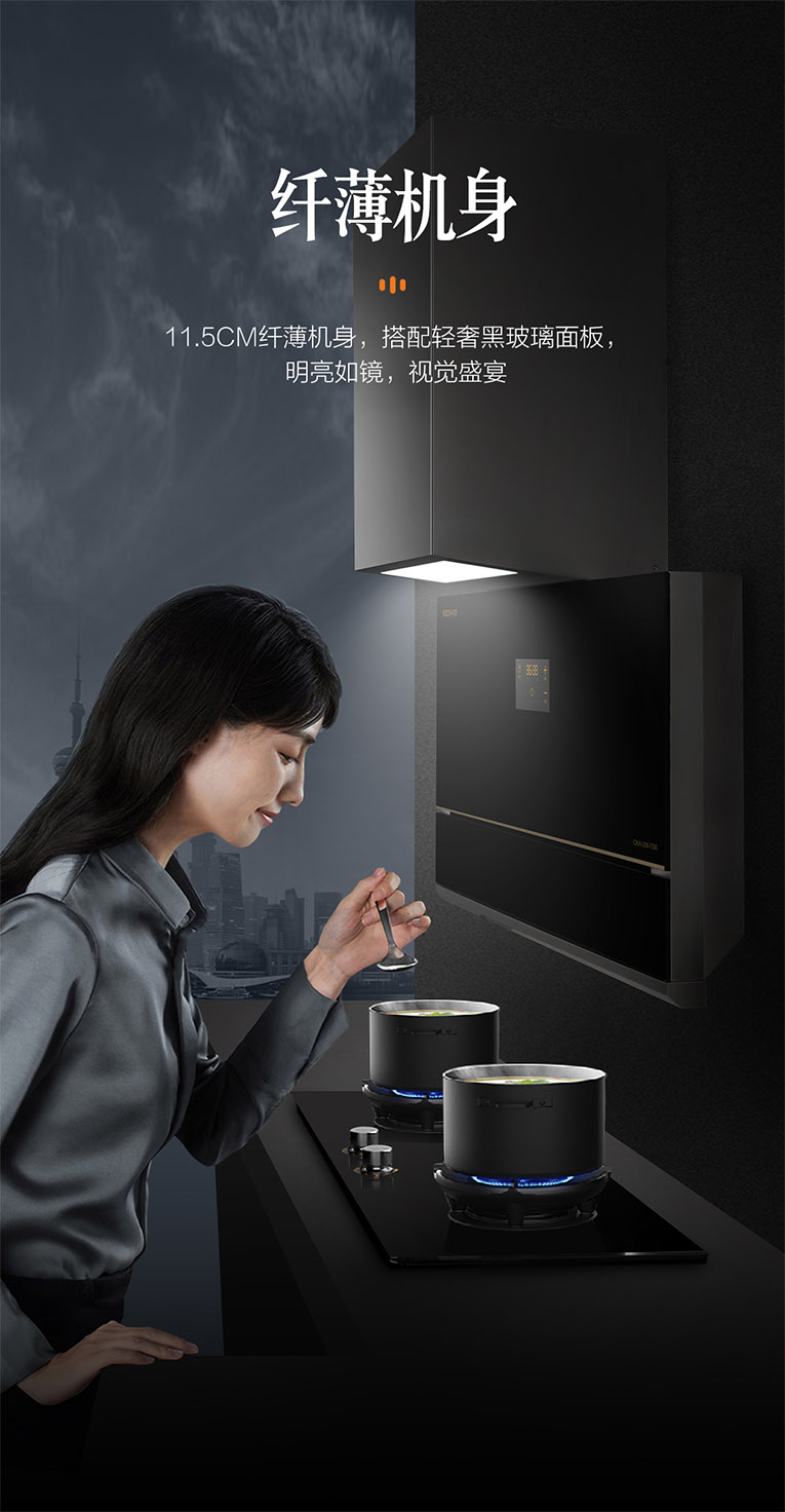 廚房環(huán)境要將就?絕不同意!高顏值的廚房離不開高性能的廚電搭配,集成灶十大品牌、廚電行業(yè)十大品牌科恩新一代大吸力煙機(jī)7350,大吸力,不跑煙!整機(jī)采用輕奢黑晶玻璃面板,11.5cm纖薄機(jī)身,搭配大寬屏柔光照明,烹飪視野更加開闊,無需低頭就能分辨調(diào)味料,盡情享受廚房的聚光燈。