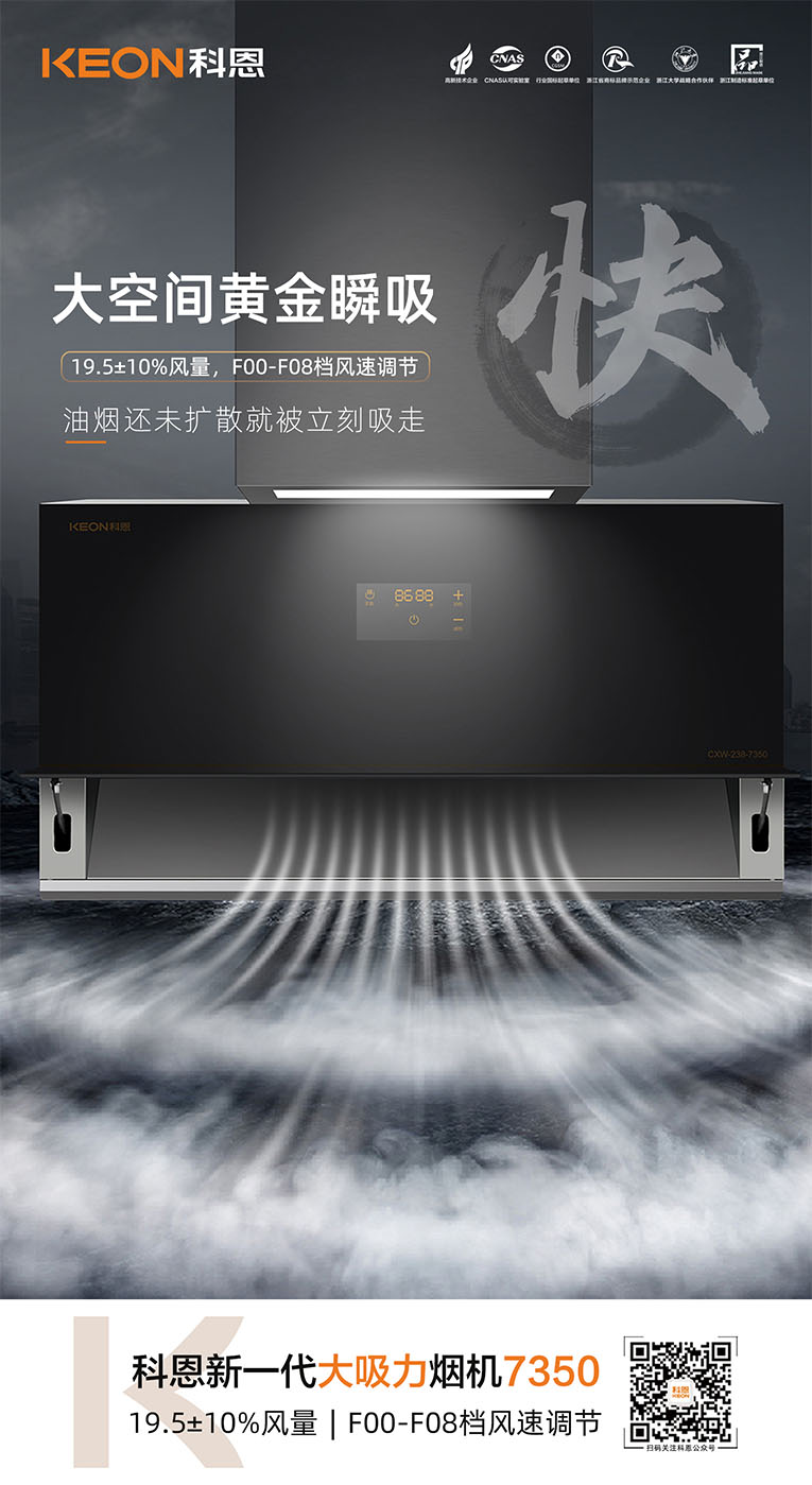 集成灶十大品牌、廚電行業(yè)十大品牌科恩新一代大吸力煙機(jī)7350即將上市,今天就跟隨小編一起,解鎖7350煙機(jī)獨(dú)特魅力。