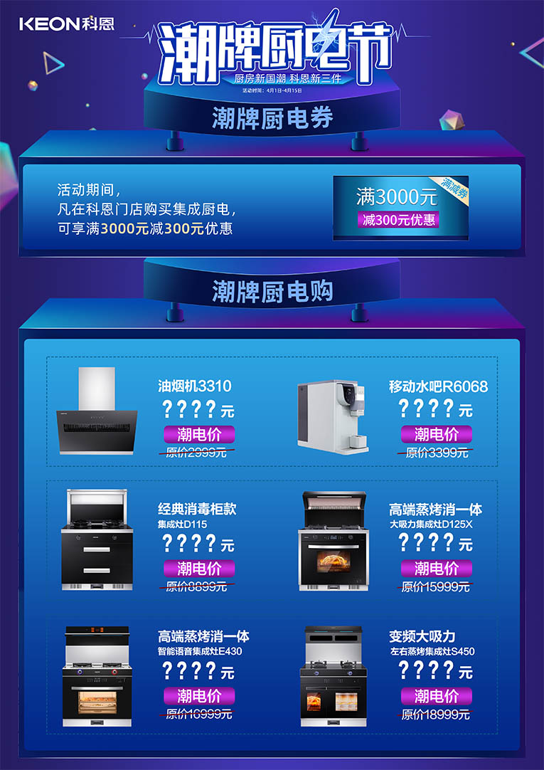 十大品牌科恩集成灶潮牌廚電節,滿3000減300,優惠享不停!