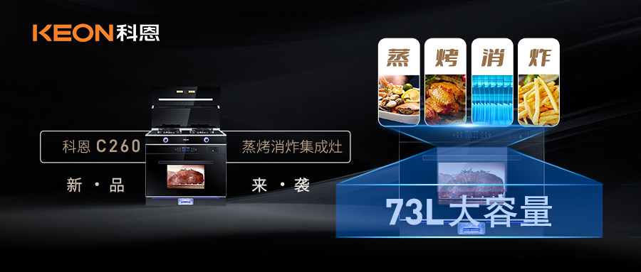 如果你的廚房智能留下一個插電廚具,你會留下哪一件?煙機、灶具、蒸箱、烤箱、消毒柜、空氣炸鍋?作為一個天天下廚、熱愛烹飪的人來說,廚房里的廚電還一樣都少不得!實在難以取舍!科恩C260蒸烤消炸一體集成灶了解一下!不僅實力與顏值雙雙在線,更是集功能之大成,高性價比于一身,從頭到腳,從內到外都是高配!