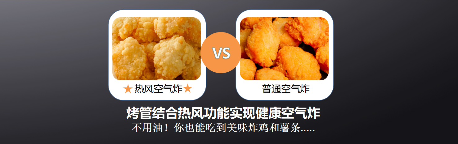 時下流行萬物皆可炸,龍蝦、烤翅、薯條、豆腐、果干、雞米花、烤腸... C260的低脂空氣炸分分鐘滿足你的炸貨需求,專業(yè)級空氣炸系統(tǒng),烤管結合熱風功能,利用高速空氣循環(huán)技術,代替高溫熱油,使食物快速脫水,實現(xiàn)健康空氣炸,炸出鍋的美味焦香薄脆,入口鮮香爆汁,恰到好處的味道,實在是美極了!不用油,也能吃到美味炸串,不產生油煙和有害物質,無油無慮,盡管放肆開吃!