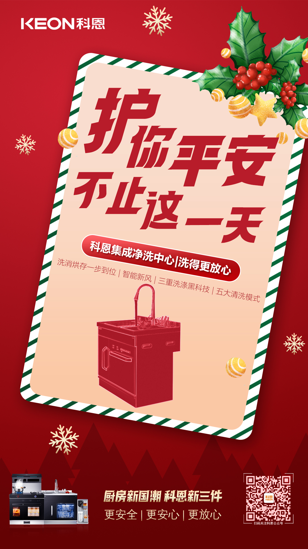 在這個格外艱難的寒夜里,我們需要一個溫暖的儀式,希望這個平安夜能讓大家一掃陰霾,在這個特殊的日子里,讓我們互道一聲平安,廚房新國潮,科恩新三件,護你平安,不止在今夜!