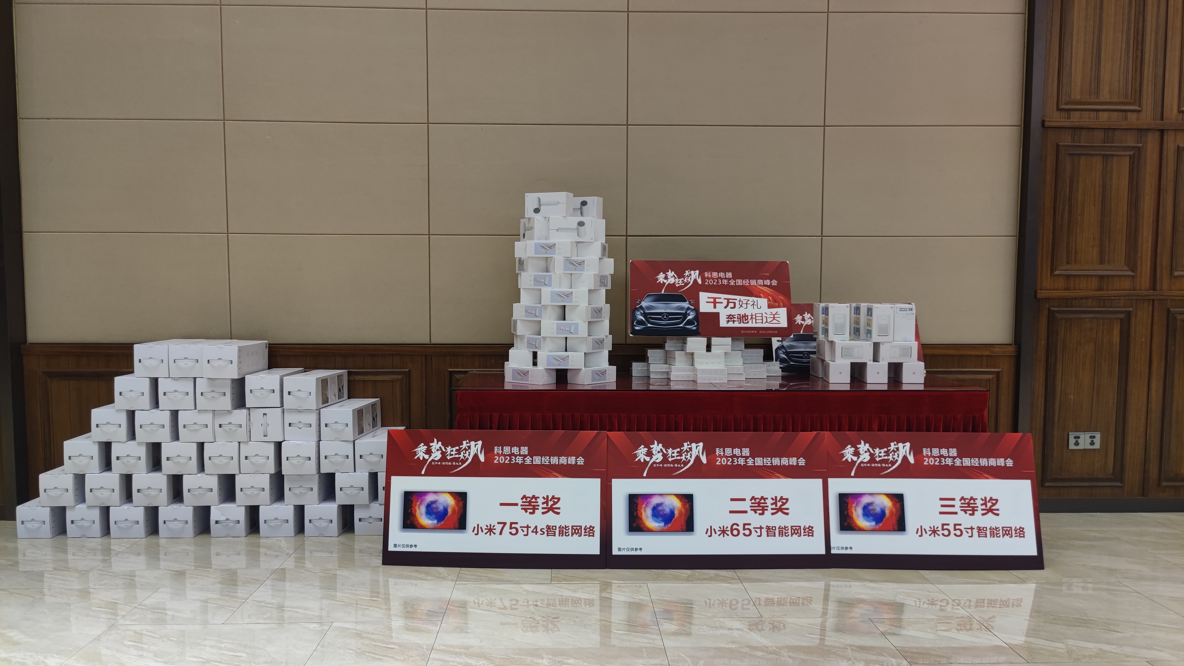 值得一提的是,本次峰會科恩準備了千萬壕禮,只為回饋經銷商家人!奔馳、五菱宏光Mini、小米電視機等好禮,紛紛送不停。