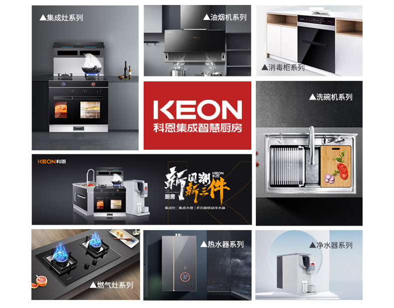 浙江科恩電器有限公司是國(guó)家高新技術(shù)企業(yè)、專利示范企業(yè)、集成灶十大品牌、CNAS認(rèn)可實(shí)驗(yàn)室、高效凈化環(huán)保之星、行業(yè)國(guó)標(biāo)起草單位、集成灶團(tuán)體標(biāo)準(zhǔn)起草單位。科恩集成智慧廚房是一家專業(yè)生產(chǎn)高檔吸油煙機(jī)、燃?xì)庠睢⑾竟瘛⒓森h(huán)保灶、移動(dòng)凈水器等一體綜合性廚衛(wèi)電器企業(yè)。