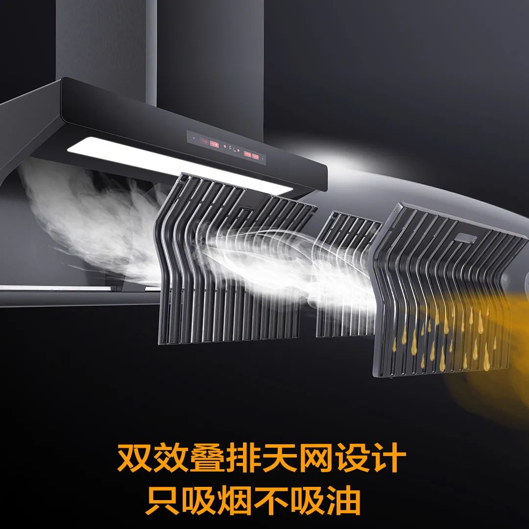 科恩6530免清洗煙機,雙效疊排天網采用易潔太空壓鑄鋁材,經過酸洗-噴砂工藝加之特氟龍噴涂最后高溫燒結,不僅不沾油、易清潔更好打理。同時,能很好的阻燃阻熱!雙效疊排天網將油煙盡數隔離在外,真正做到只吸煙不吸油。煙腔無需清潔,也能潔凈如新!