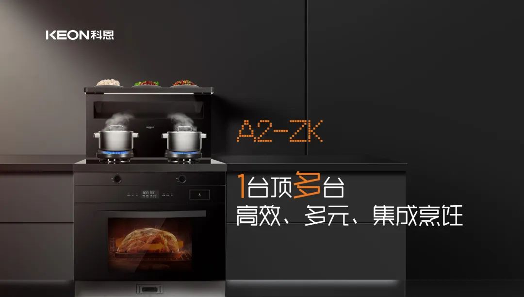 科恩A2蒸烤一體集成灶,集油煙機(jī)、燃?xì)庠睢㈦娬粝洹㈦娍鞠洹⒔鈨鰴C(jī)、發(fā)酵機(jī)、烘干機(jī)、保溫箱,8臺一體。一平方就籠絡(luò)了整個廚房電器,大幅度節(jié)省了廚房空間,小廚房也能有大作為。