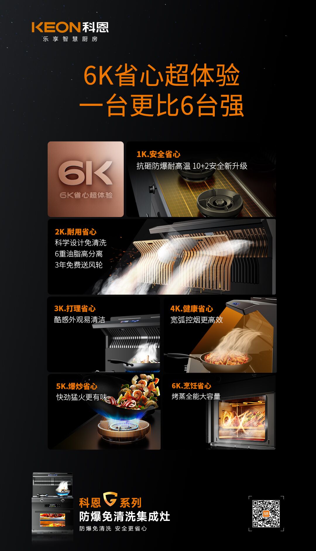 怎么樣的集成灶才能更完美匹配用戶的需求。2023年,科恩研發了G系列防爆免清洗集成灶,6K省心超體驗,完美適配消費者需求!