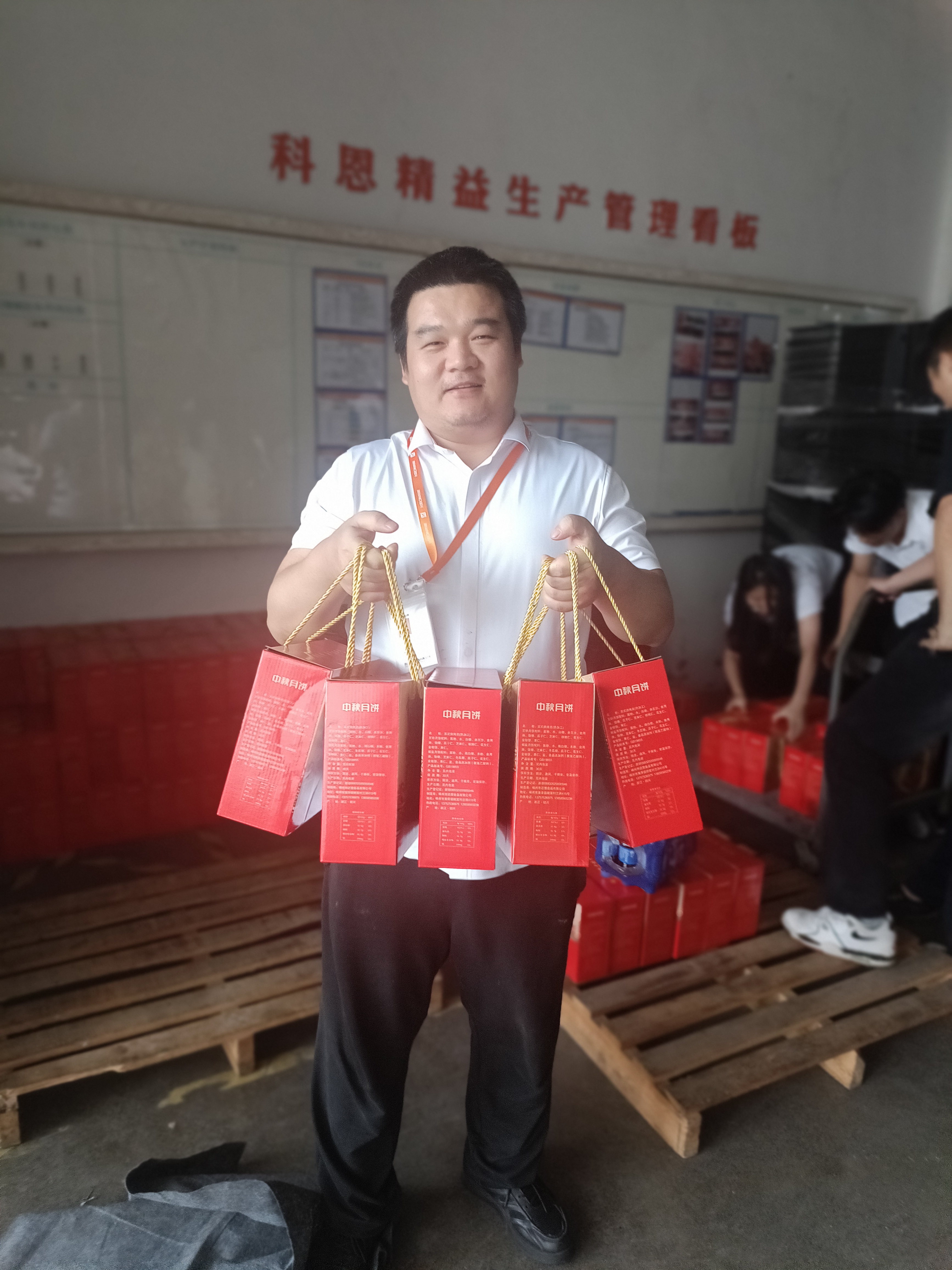一份份中秋福利送到每一位家人們手中,同時送去科恩最真誠的問候和祝福。福利捧在手里,暖在心里!