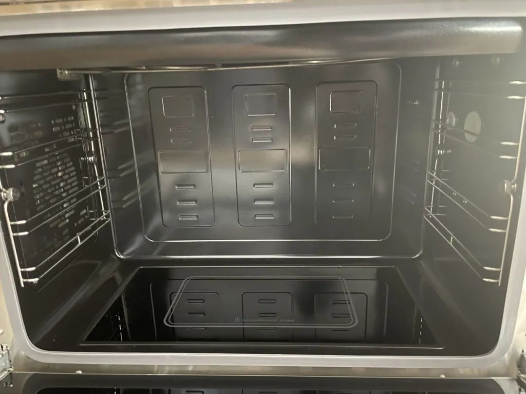 蒸烤箱內(nèi)部采用一體拉伸搪瓷內(nèi)膽,不易積食物殘渣、水垢和油漬,清理更便捷。