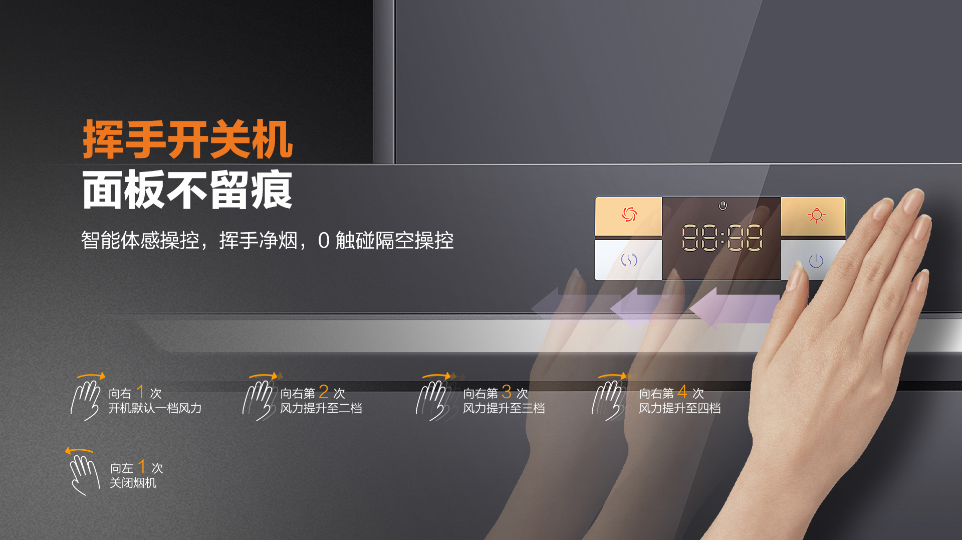 7620配置智能體感操控,揮手凈煙,0觸碰隔空操控,下廚無需手忙腳亂找按鍵。