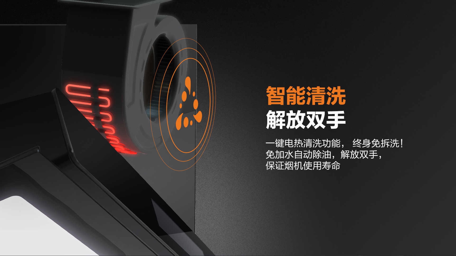 同時,還配置一鍵電熱清洗功能,免加水自動除油,解放雙手,保證煙機使用壽命。