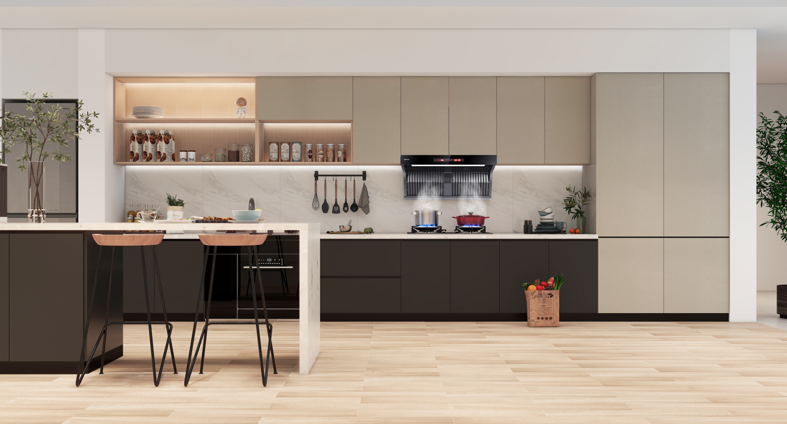 但中式烹飪重油,油煙問題不容忽視,如何改善油煙難題,讓開放式廚房步入千家萬戶。科恩解決中式廚房油煙難題,讓開放式廚房不再是夢想。