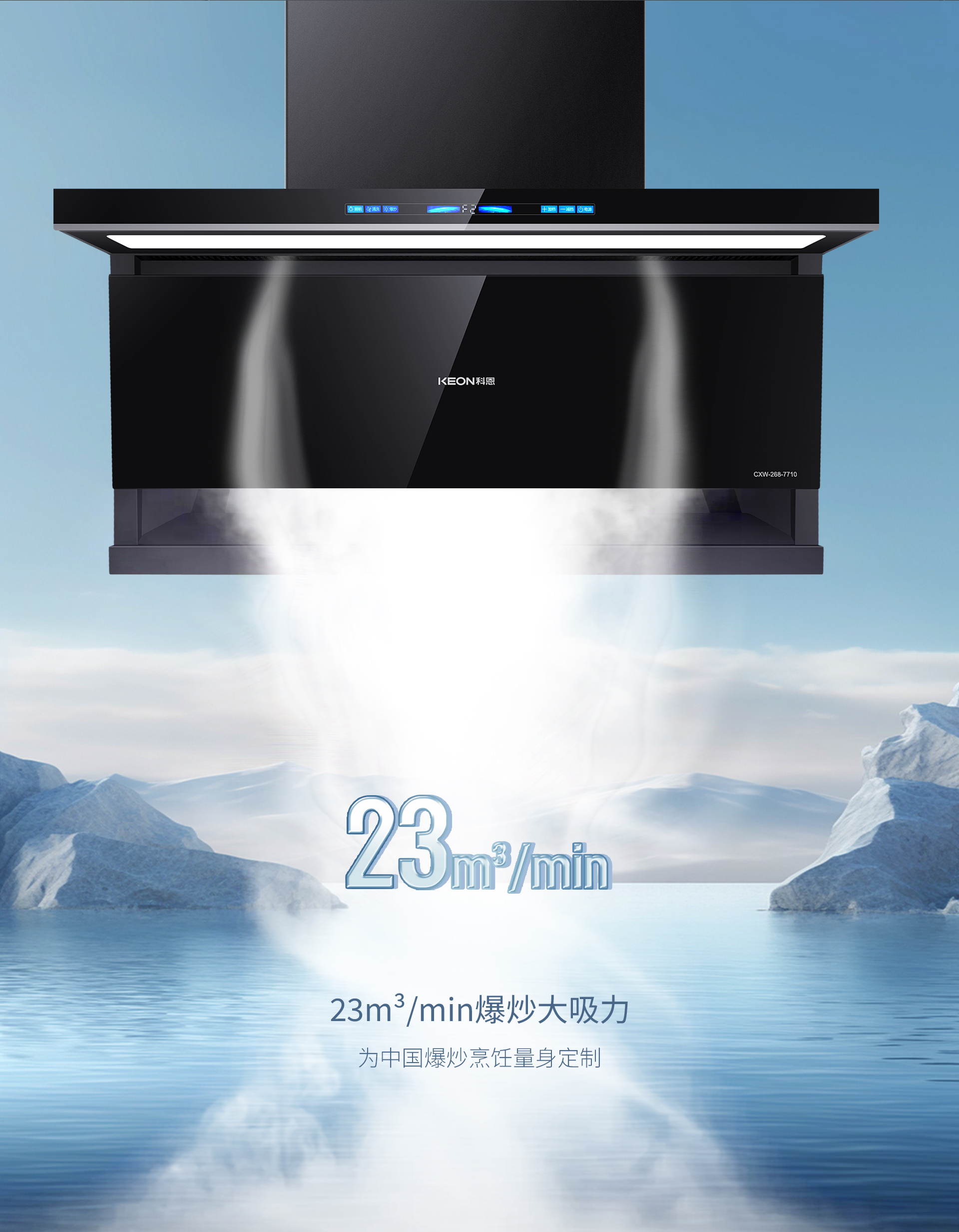 面對中式烹飪中常見的重油爆炒,它也能從容應(yīng)對,23m³/min的強勁吸力如颶風過境,瞬間將油煙吸凈,還廚房一片清新。