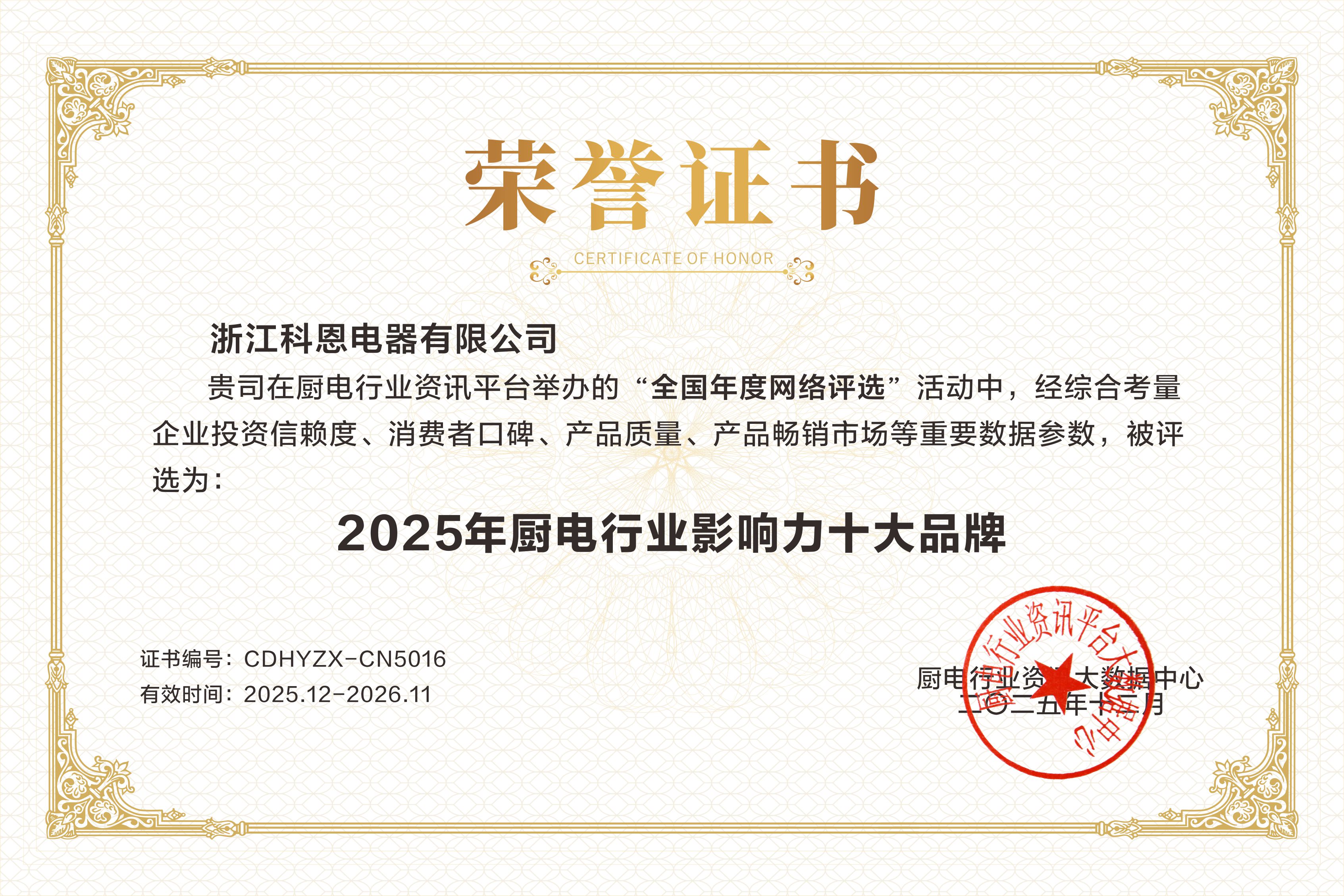 每一次獲獎(jiǎng),都是對(duì)過(guò)去的總結(jié),更是對(duì)未來(lái)的承諾。科恩電器感謝每一位用戶的信賴(lài)與選擇,感恩行業(yè)伙伴的認(rèn)可與同行。站在新的高度,科恩將承載這份榮耀與期待,繼續(xù)秉持匠心與創(chuàng)新精神,不僅致力于提升中國(guó)家庭的廚房生活品質(zhì),更愿與行業(yè)一同成長(zhǎng),共同推動(dòng)廚電產(chǎn)業(yè)邁向更高水平的發(fā)展征程。