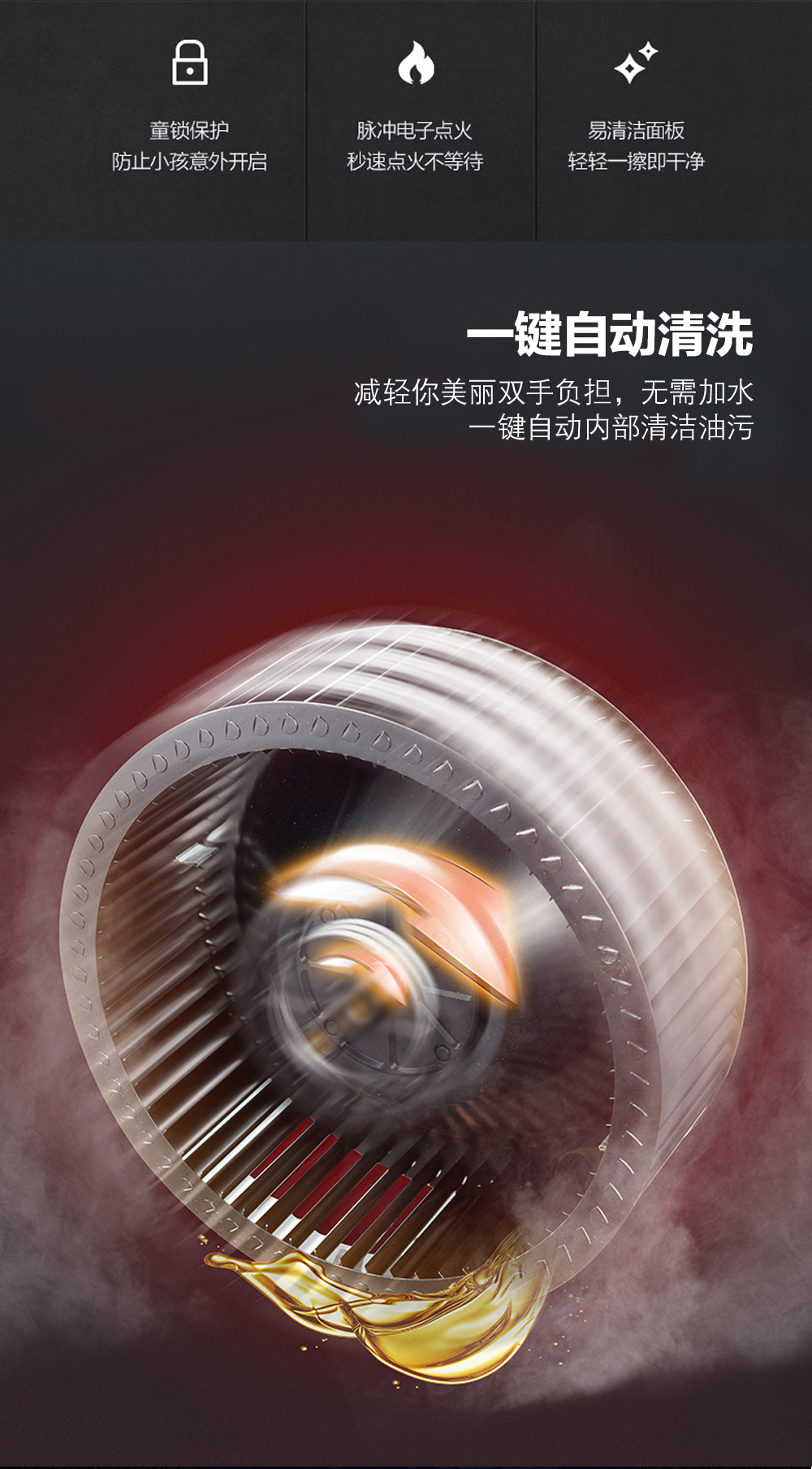 • 低空近吸技術,緊鎖升騰油煙不上臉,吸煙快人一步,油煙無處可逃
