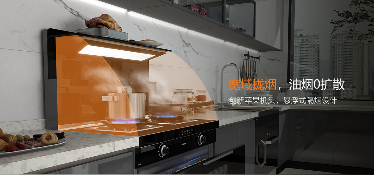 - 懸浮式隔煙設(shè)計,寬域攏煙,油煙0擴散