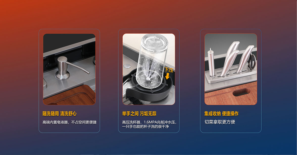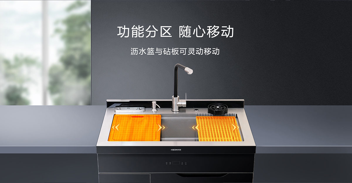 - 瀝水籃與砧板可靈動移動,功能分區(qū),隨心移動
