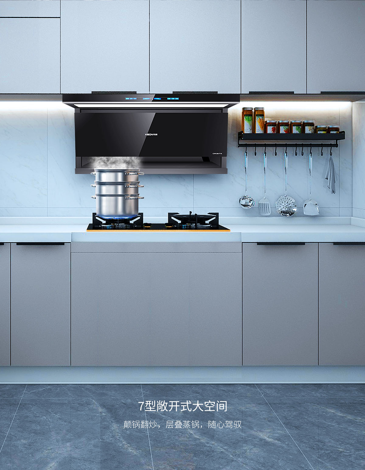 105°仰角設計,瘦身大空間,翻炒不碰頭