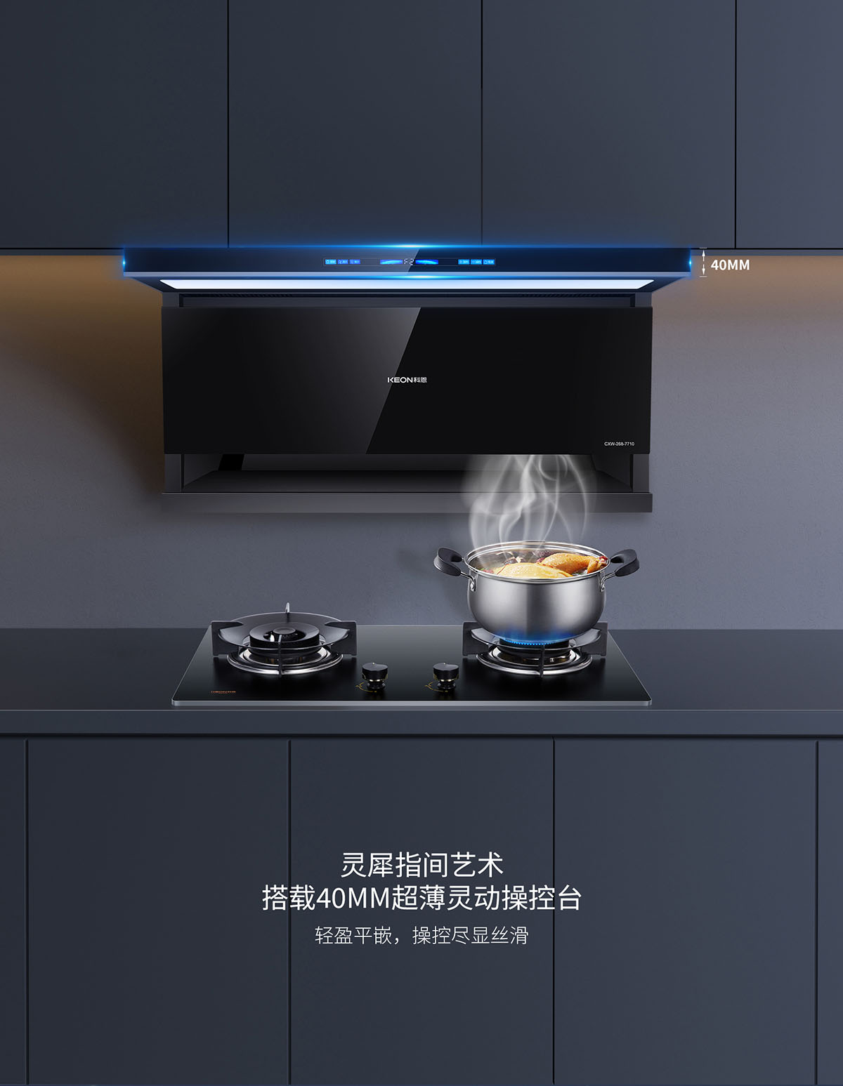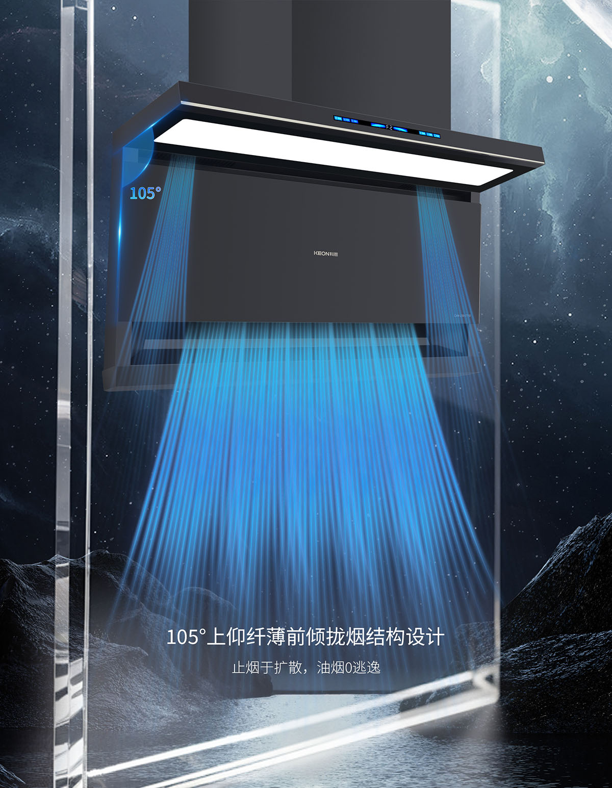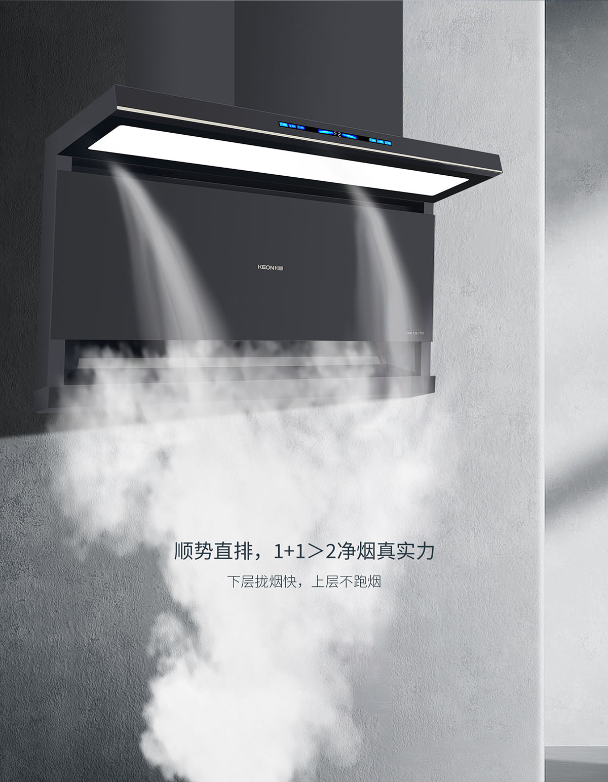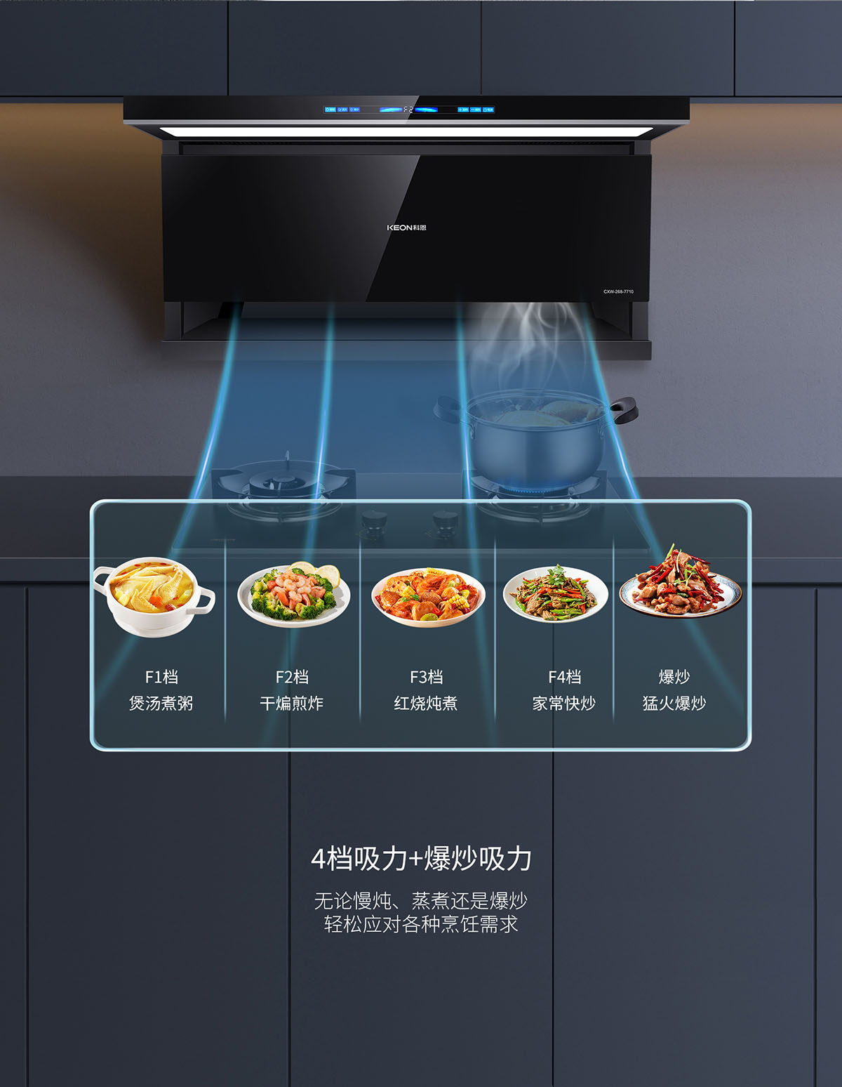 下吸上攏,頂側雙吸結構,油煙不逃逸