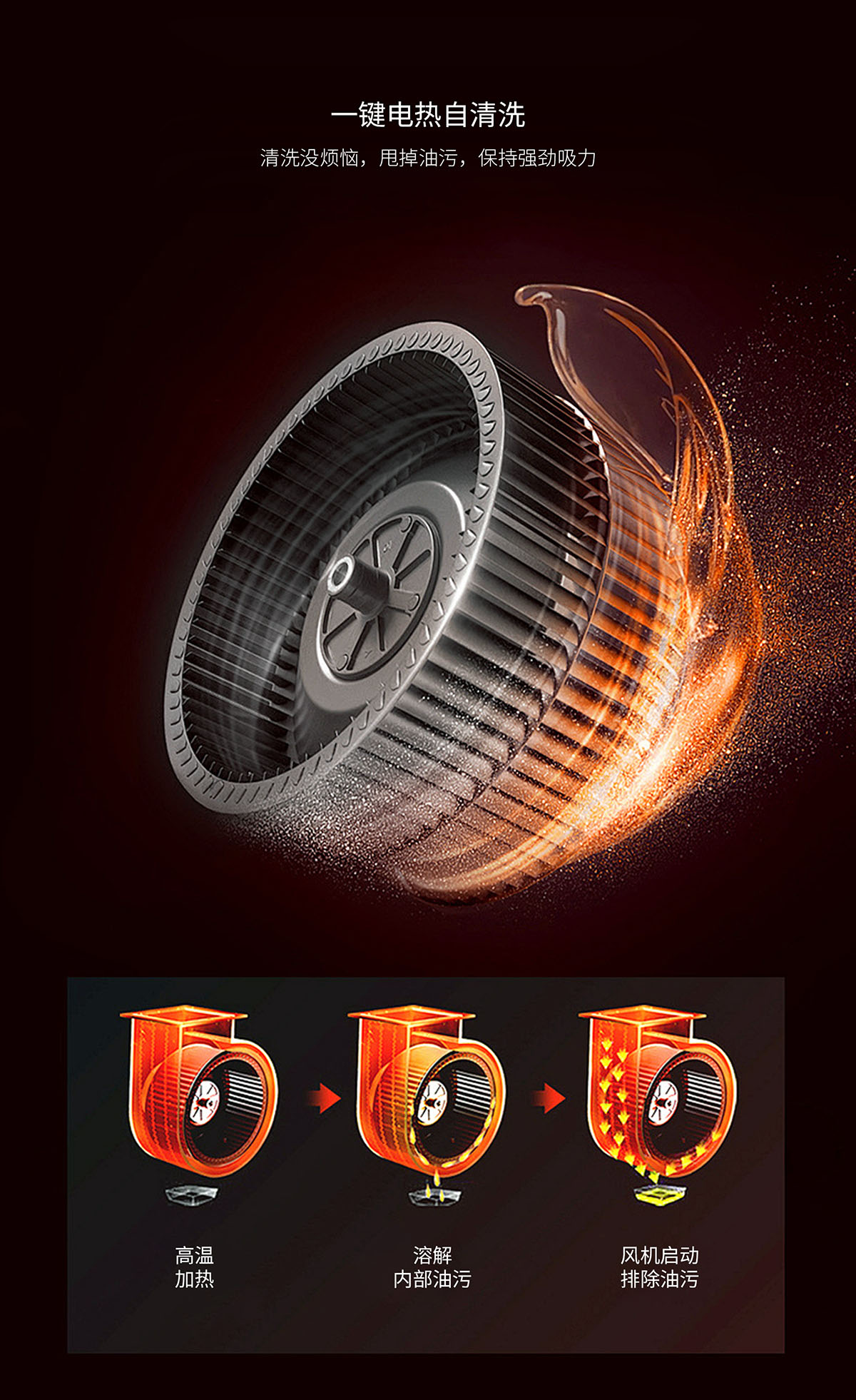 電熱自清洗,甩掉油污,保持強勁吸力