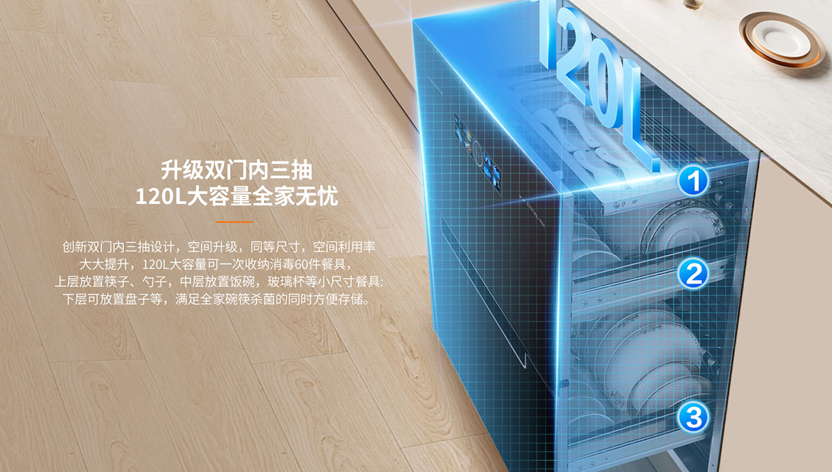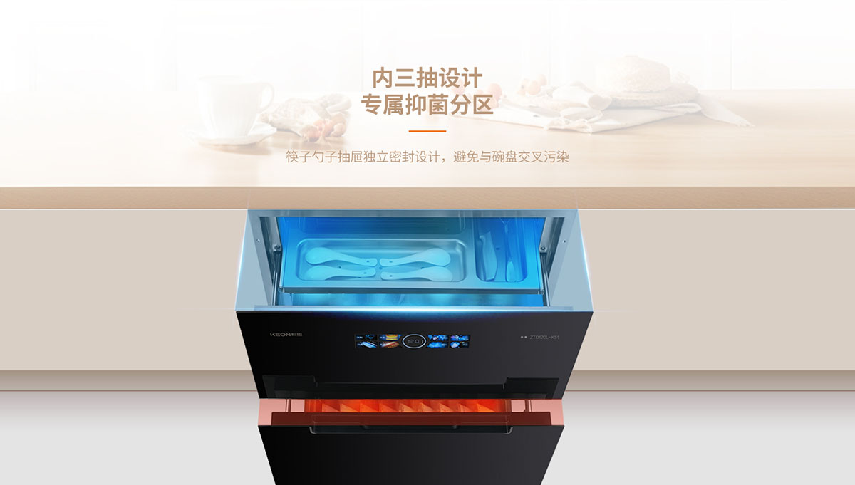 - 內三抽專屬抑菌隔層,避免餐具交叉污染