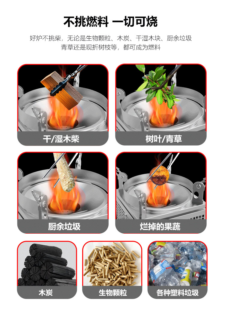 好爐不挑柴,一切固體皆可燃燒