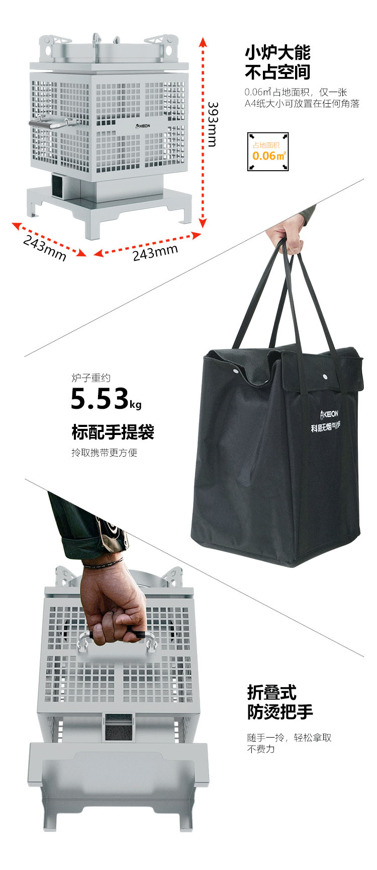 折疊式防燙把手,釋放空間,移動方便
