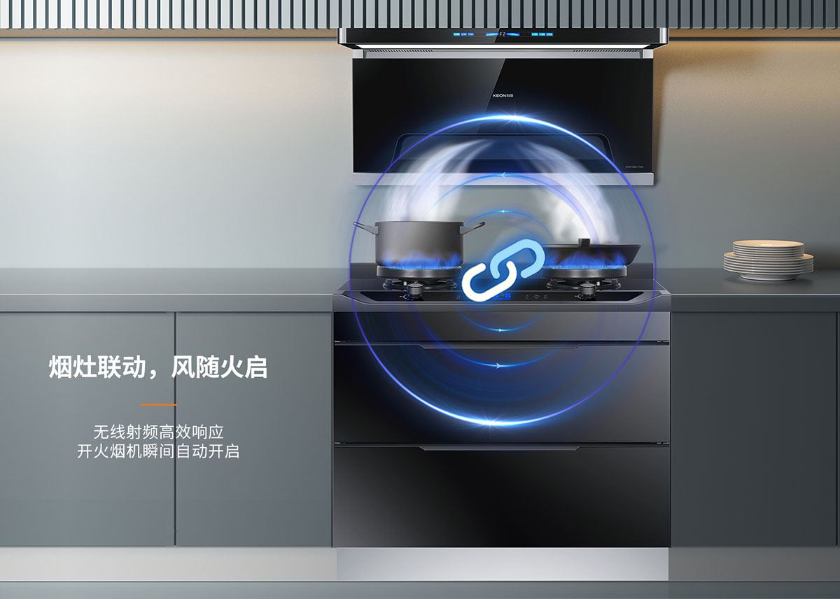 - 煙灶智能聯(lián)動,風(fēng)隨火啟
