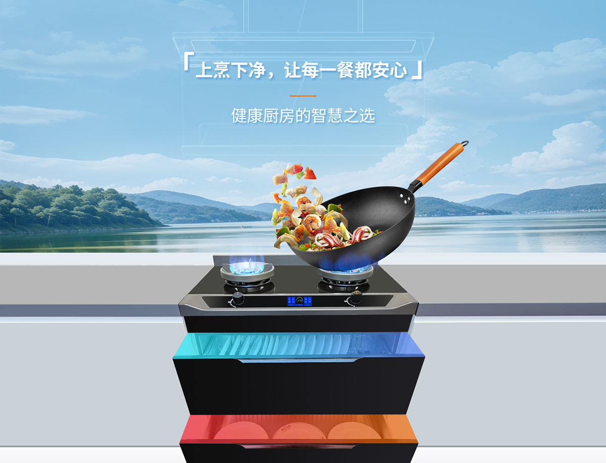 產(chǎn)品型號:烹飪中心P10(大雙抽消灶款)產(chǎn)品名稱:集成烹飪中心(消+灶款)