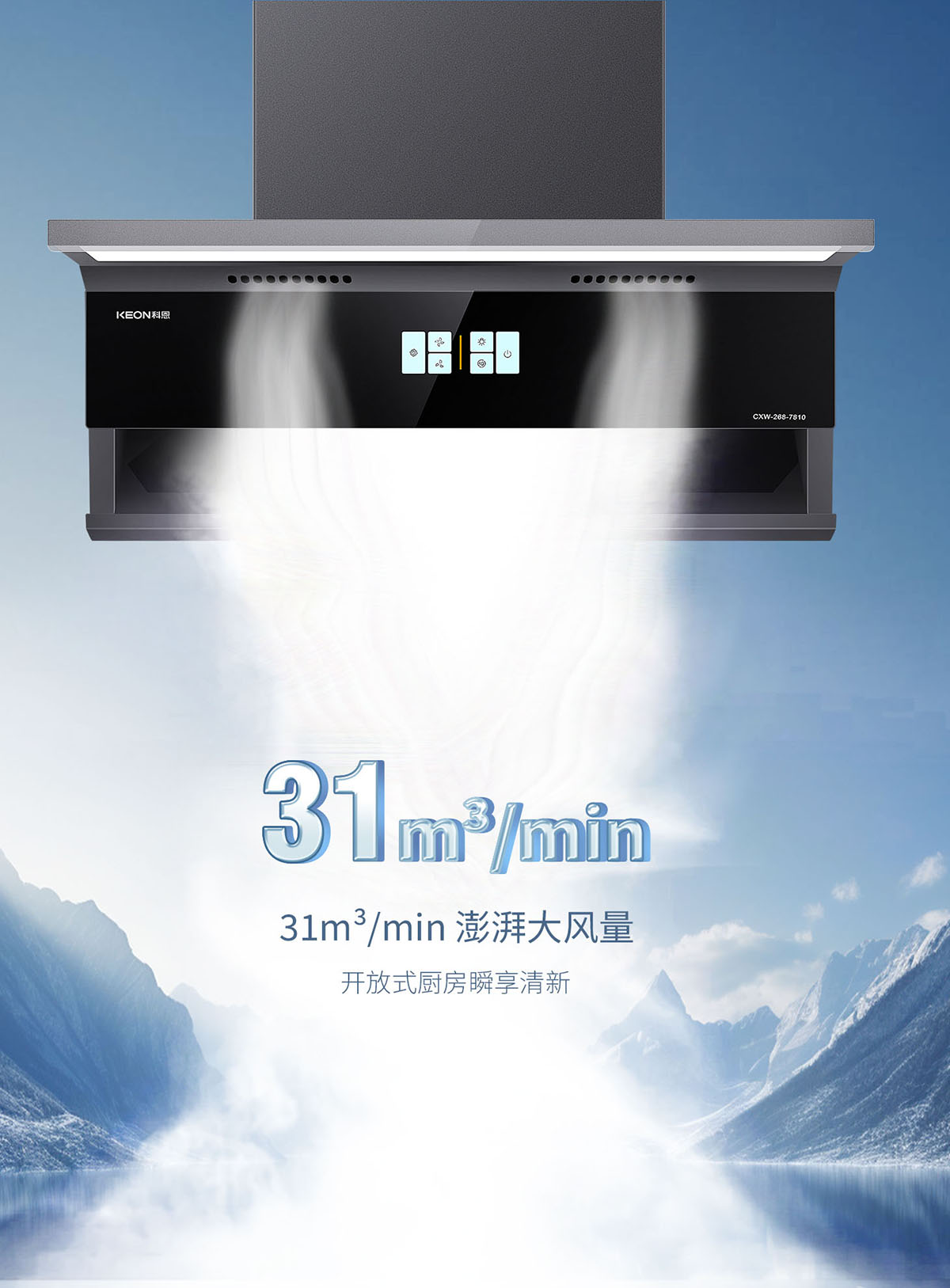 - 31m³/min 澎湃大風(fēng)量,爆炒油煙3秒清場
