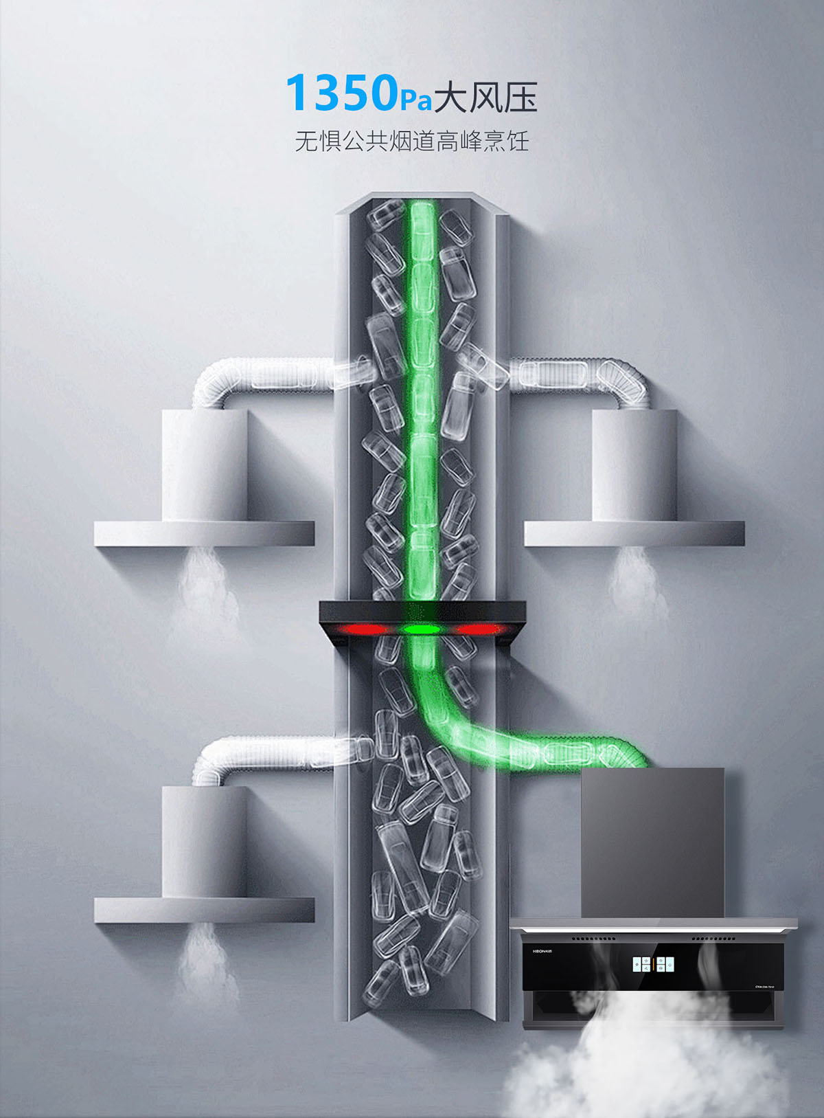 - 1350Pa大風(fēng)壓,無懼公共煙道高峰烹飪