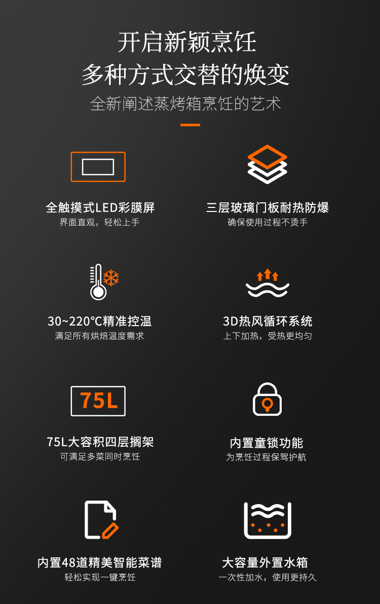 - 75L大容量,可滿足多菜同時(shí)烹飪