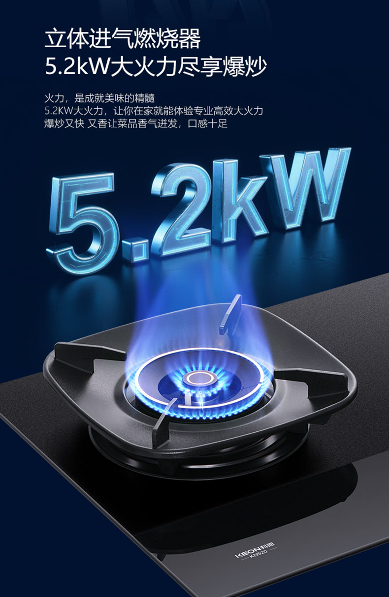 - 三噴引射,立體進氣,5.2kW大火力盡享爆炒