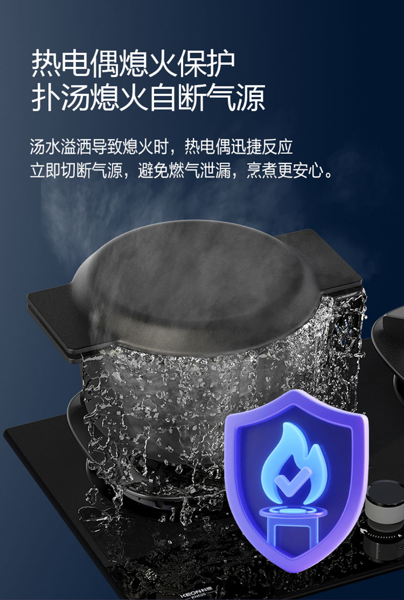 - 意外熄火保護,火滅即刻切斷氣源,保障廚房安全