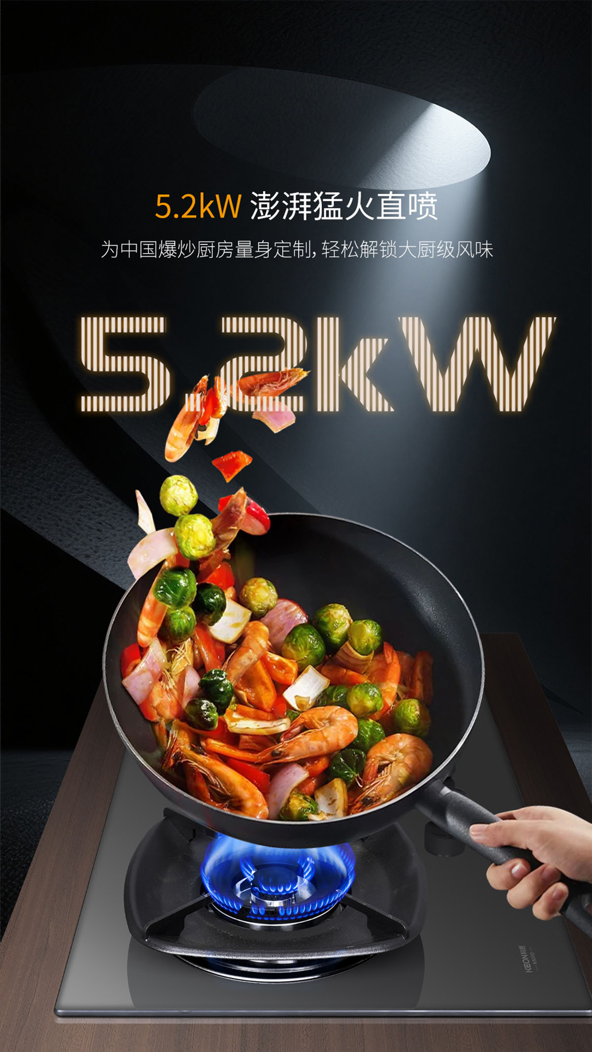 - 5.2kW 澎湃猛火直噴,爆炒更隨心