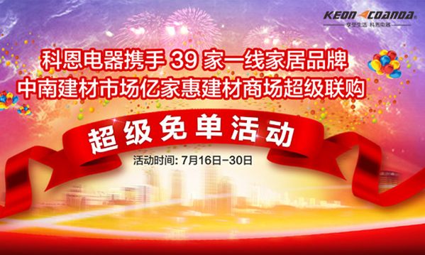 7月16日—30日,為期15天的中南建材市場億家惠建材商場超級聯購大免單活動火熱舉辦中,此次活動由浙江科恩電器牽頭,...