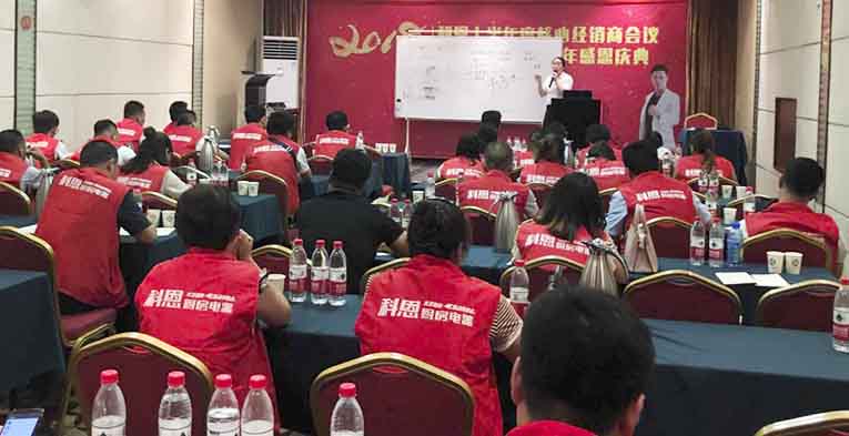 “產(chǎn)品只是工具,渠道才是維持企業(yè)生存和發(fā)展壯大的王牌,在競爭多元化的市場上,我們所面臨的對手不僅是業(yè)內(nèi)同行,還有跨行企業(yè)”??贫麟娖鳡I銷總監(jiān)趙漢斌表示,2018年以來,全品類廚電專業(yè)質(zhì)造企業(yè)科恩電器緊跟市場步伐,開啟全新營銷模式“火炬計劃”K6單店業(yè)績倍增系統(tǒng)培訓(xùn),育商強商,助力終端?!盎鹁嬗媱潯庇煽贫骺偛坎俦P,科恩商學(xué)院主辦開設(shè)最貼近市場營銷的實戰(zhàn)攻略課程,采取“引進來”號召全國經(jīng)銷商到訪總部培訓(xùn)K6專業(yè)系統(tǒng)課程,“走出去”科恩商學(xué)院育商精英團隊親臨終端門店,落地幫扶,真正實現(xiàn)知行合一,實際操作產(chǎn)生銷量倍增的方式聯(lián)合打造強企強商命運共同體。